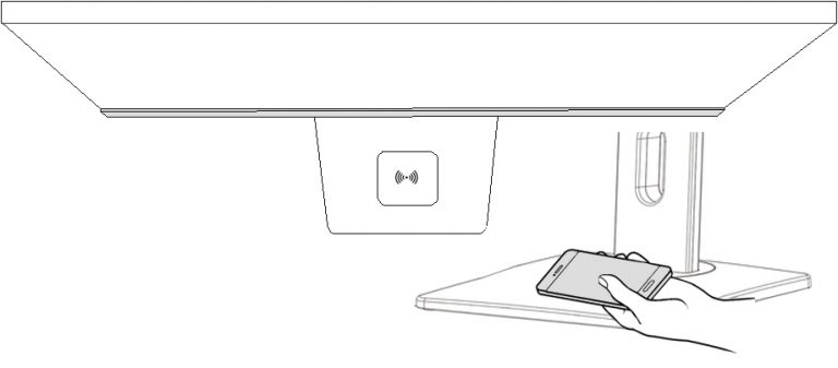 Ihr All-in-One verfügt über eine induktive Ladefläche (Qi-Standard) an der Unterseite des Standfußes. Damit können kompatible Smartphones und andere Qi-fähige Geräte kabellos geladen werden.
