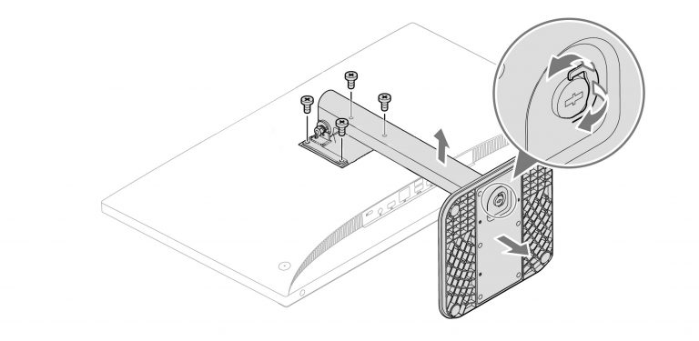 - Schrauben Sie den Standfuß mit den 4x Schrauben an den All-in-One PC.